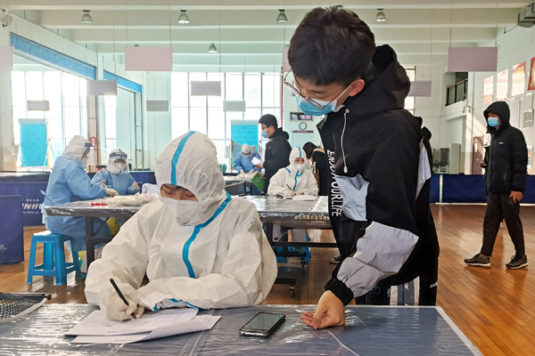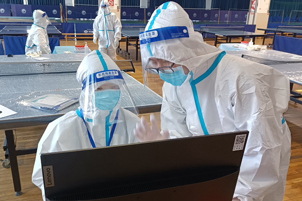 3月10日、11日,27名志愿者身着防护服,在南湖校区体育馆核酸集中检测点进行全程全方位服务,配合社区和医务人员进行登记,指导师生进行扫码预约,维持现场秩序。两天累计服务时长17个小时,共协助完成南湖校区师生员工万余人次的核酸检测任务。
