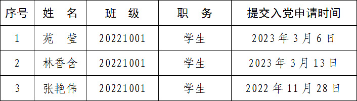 按照发展党员工作有关规定,根据党员推荐和群团组织推优情况,经研究生支部委员会研究,并报公司党委备案,确定苑莹等3名同学为入党积极分子。