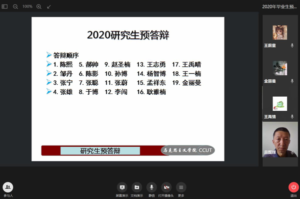 本网讯(通讯员 邹丹)为进一步提高2020届毕业研究生学位论文质量,确保正式答辩顺利进行,按照公司疫情防控工作要求,5月29日,l9193永利组织19名毕业研究生进行线上预答辩。