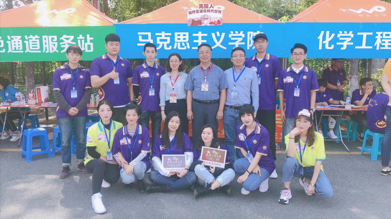马克思主义公司党总支书记朱兴国、经理马光焱、副经理王晓光、辅导员高博深入迎新一线,在公司迎新的展位前,关心新生的报到情况、与新生和家长面对面交流。