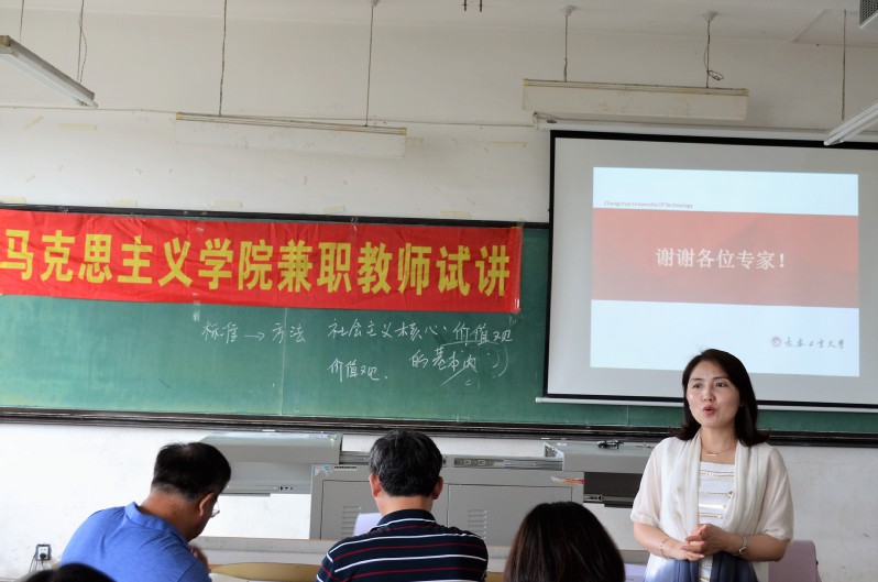 教学副经理张玉琳首先向兼职教师介绍了参与试讲的领导和评委,宣布了试讲顺序和要求,接着五位兼职教师结合相关课程的内容和特点进行了现场教学。五位教师在教学展示过程中,不仅准备充分、逻辑清晰、表述流畅、仪表大方,而且充分展现出各位教师的理论功底和研究专长。