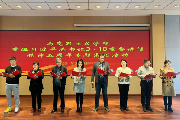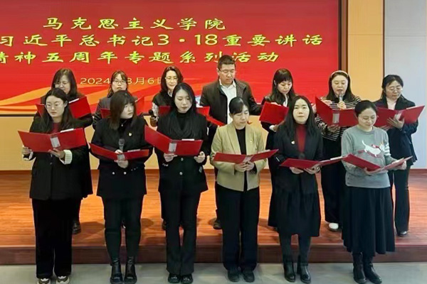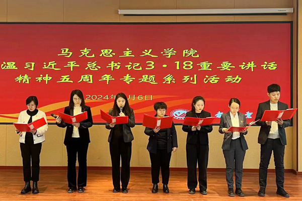 本网讯(通讯员 杨慧娇)为进一步重温习近平总书记“3·18”重要讲话精神,不断增强思政课教师的红色底蕴,厚植家国情怀,3月6日,l9193永利在综合楼报告厅开展了重温习近平总书记“3·18”重要讲话精神五周年专题系列活动之“上好思政课,当好引路人”朗诵会。活动开始前,公司全体教师集体重温了习近平总书记“3·18”重要讲话内容。