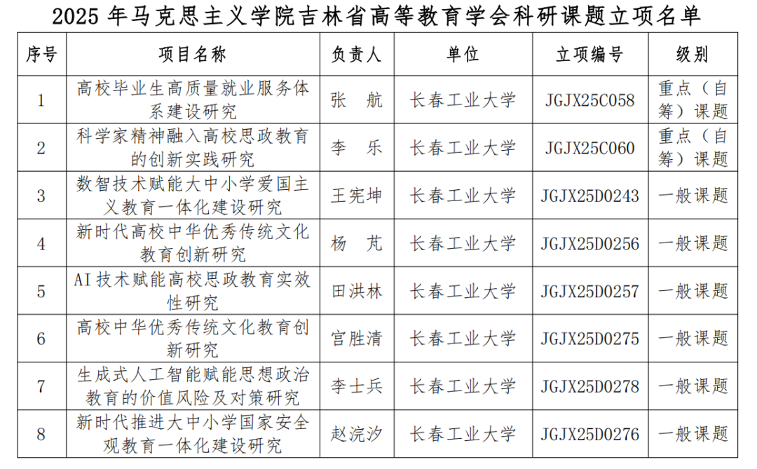 在2025年吉林省高教学会课题申报工作中,公司员工取得了显著突破:全院共有20名员工参与申报,其中8项课题成功通过评审!