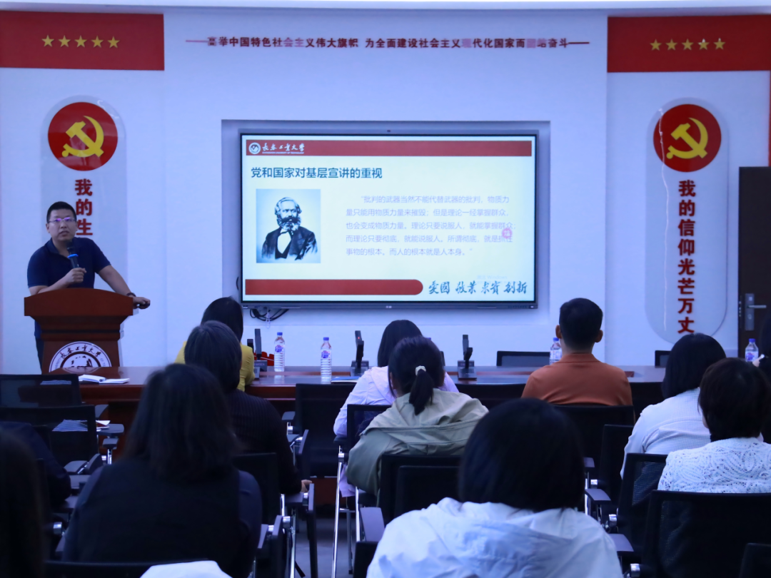 楚洪涛老师汇报了暑期参加中宣部全国基层宣讲骨干培训和复旦大学高校思政教师培训的收获。他结合培训内容与实践案例,分享了在基层宣讲内容设计、形式创新与实效提升方面的思考,并介绍了复旦大学在思政课改革创新、教师能力提升及校园文化融合上的经验做法,为公司进一步推进基层宣讲创新、教师队伍建设和思政教育发展提供了有益借鉴。