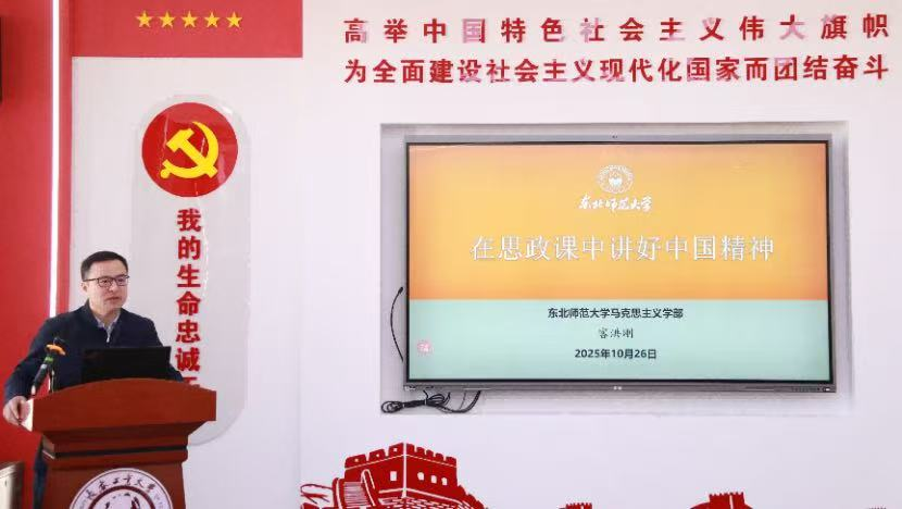 东北师范大学马克思主义学部客洪刚教授以《在思政课中讲好中国精神》为题,紧扣思政课教学实践,从内容建构、方法创新等维度,提出讲好中国精神的策略路径,为提升思政课育人实效提供了实践指导。